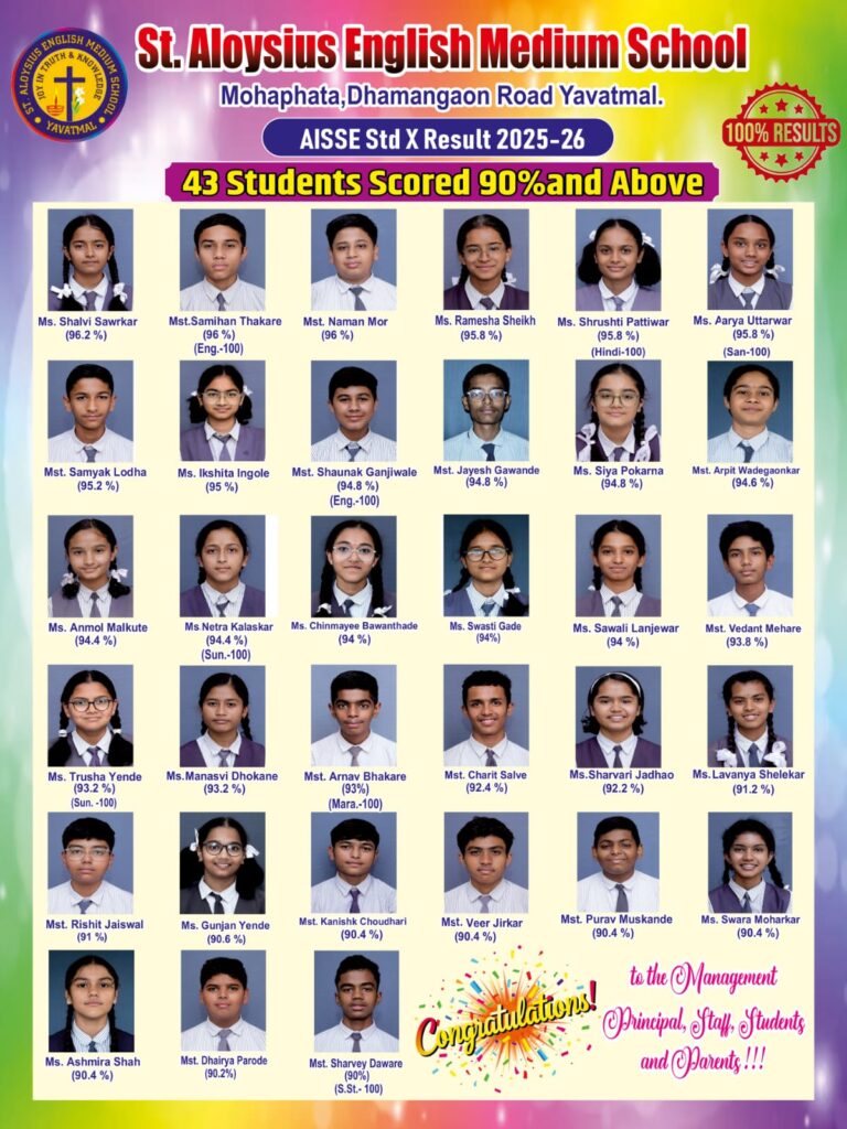 St. Aloysius English Medium School, founded in 1982 and managed by the Poor Sisters of Our Lady, is located in Yavatmal. We are committed to student development, focusing on spiritual, physical, psychological, cultural, social, and emotional growth. Our motto, “Joy in Truth & Knowledge,” reflects our dedication to a joyful and disciplined learning environment.